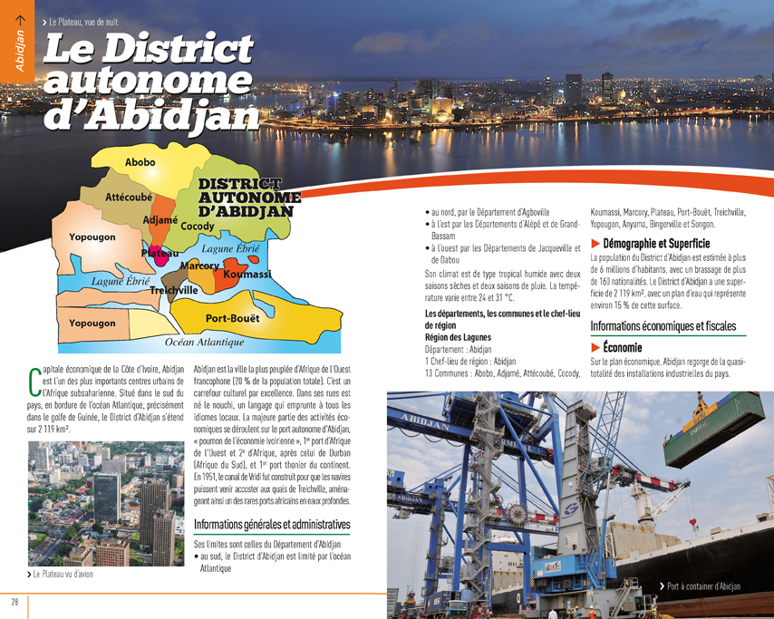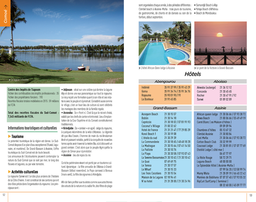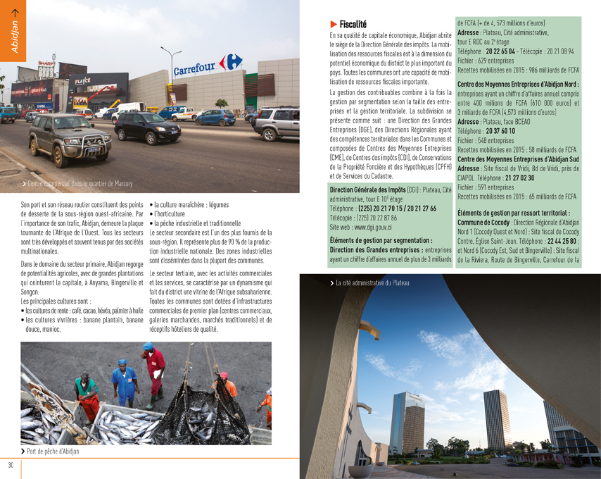 de tableaux synthétiques et de cartes, le Guide Ivoire a été conçu en premier lieu comme un annuaire de référence à destination des acteurs économiques : coordonnées des administrations, des centres d'imposition, mais aussi le potentiel chiffré des entreprises,